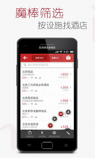 可根據(jù)需要篩選出帶WIFI、游泳池、健身房或新開業(yè)的酒店。