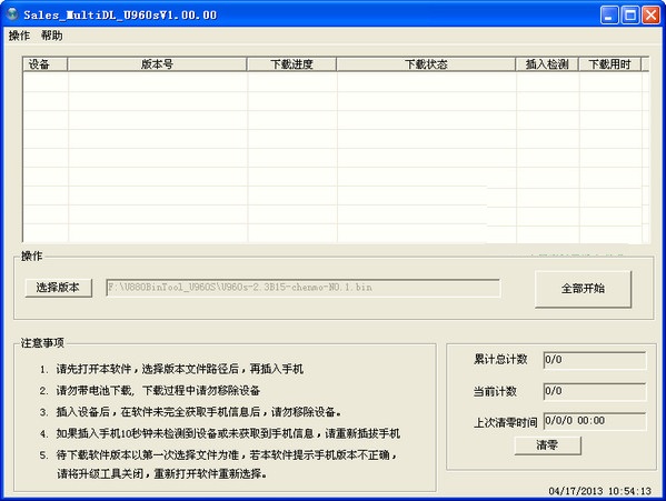 (6) 待下載的版本以第一次插入手機獲取的信息為準(zhǔn)。若本軟件提示手機版本不正確,請關(guān)閉軟件并重新打開軟件以選擇最適配的版本文件。