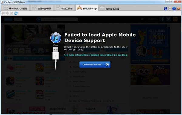 i-FunBox是iphone以及蘋果其他產品的通用文件管理軟件,使蘋果的各類便攜式設備得以共享文件和程序,為您輕松上傳電影、音樂、電子書、照片以及各類應用軟件。另外i-FunBox還有個極富特色的用途,即把你的iphone變?yōu)橐粋€u盤,可攜帶任何數(shù)據,需要itunes支持。i-FunBox無須越獄和任何破解,可以直接使用,不安裝任何守護進程,同時也支持目錄管理。