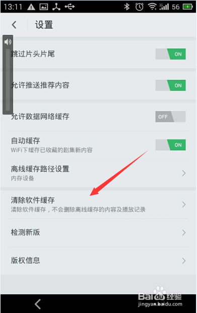 進入到設(shè)置的界面中之后,進行點擊“清除軟件緩存”的按鈕。