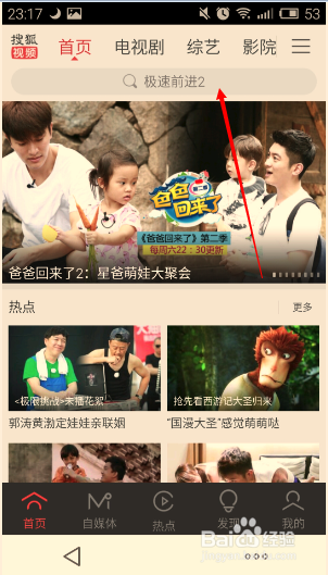 打開搜狐視頻,我們看到如圖示界面。我們點擊箭頭示位置。
