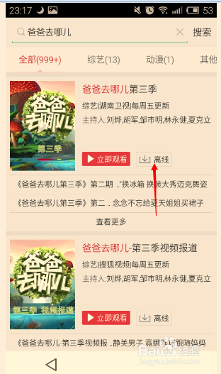 搜索完成之后,找到你想看視頻,點擊離線,如圖。