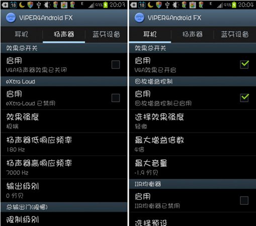 正常情況下,V4A開(kāi)啟動(dòng)態(tài)系統(tǒng)后,聲音的各個(gè)頻段層次感非常清晰,低音有彈性,不渾濁。開(kāi)啟電子管之后聲音甜美柔和。開(kāi)啟色彩渲染之后聲場(chǎng)變大,音樂(lè)背景的細(xì)節(jié)被放大。