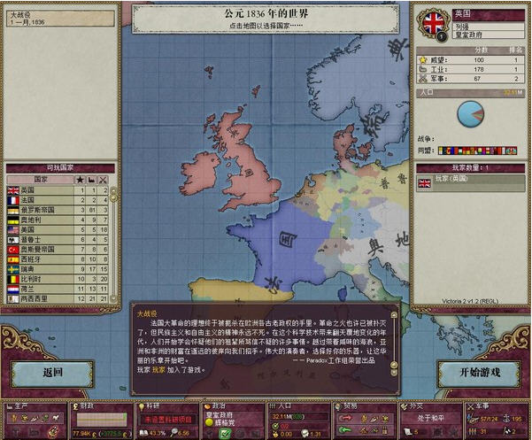 1.首先,第一步當(dāng)然是打開維多利亞2,選取英國,進入游戲