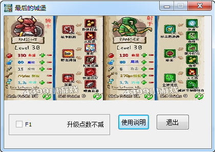 最后的城堡是一款經(jīng)典的動作策略類游戲,最后的城堡修改器的功能為升級點(diǎn)數(shù)不減,就是說升級一次可以無限加點(diǎn)了。