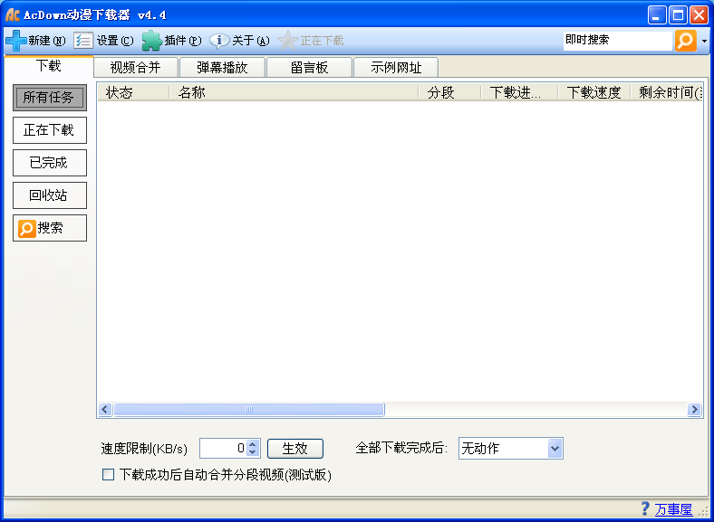 AcDown動(dòng)漫下載器是一個(gè)免費(fèi)、開(kāi)源、專業(yè)的動(dòng)漫資源下載器,界面簡(jiǎn)潔,使用方便,能夠下載國(guó)內(nèi)大部分在線視頻網(wǎng)站和在線漫畫網(wǎng)站的資源,包括Acfun、Bilibili、優(yōu)酷、土豆、YouTube、愛(ài)漫畫、吐槽網(wǎng)等等,內(nèi)置了AcPlay彈幕播放器,可以自由匹配、播放來(lái)自各個(gè)彈幕網(wǎng)站的視頻和彈幕。