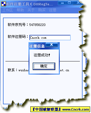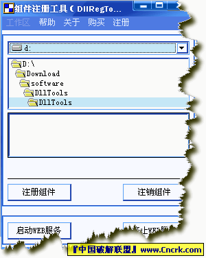 3.2、如果你有很多組件要注冊(cè),沒(méi)有此工具前,你得在Dos命令行狀態(tài)下,輸入一大堆regsvr32....,這也是很麻煩的,有了此工具,你只要在此工具的文件選擇框中選擇要注冊(cè)的*.Dll文件,點(diǎn)一下工具中的[注冊(cè)組件]即可。