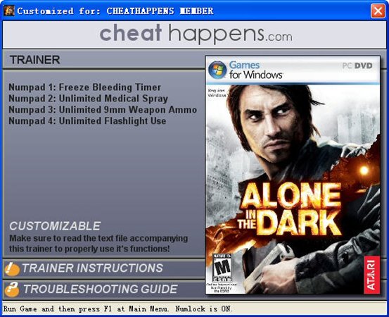 鬼屋魔影修改器是同名游戲鬼屋魔影的四項(xiàng)修改器,分別增加停止出血,無(wú)限手電筒.無(wú)限子彈.無(wú)限醫(yī)藥,噴霧器4個(gè)功能.修改器雖然是英文版,但是在中文版同樣適用,只有停止出血功能存在問(wèn)題.