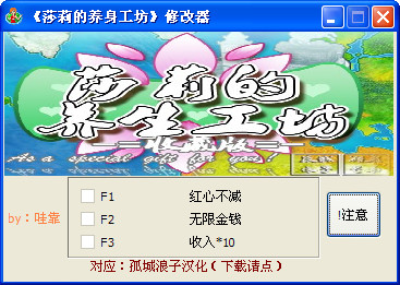 莎莉的養(yǎng)生工坊修改器是漢化版輔助工具,擁有金錢修改,紅心不減等功能。