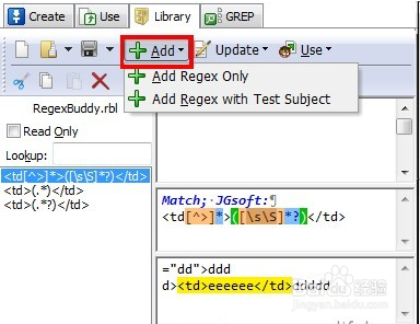 使用Libray庫(kù)文件。測(cè)試好了正則表達(dá)式后,你可以把他添加到自定義庫(kù)里,并保存本地硬盤(pán)。這樣下次你可以直接調(diào)用出來(lái)修改。通過(guò)Libray按鈕,你可以切換到該面板。你首先要把選中Read Only去掉,才編輯該庫(kù)文件,如下圖所示: