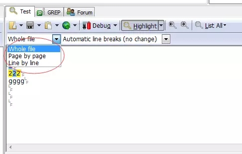 如果需要測(cè)試的內(nèi)容超過(guò)一行,那么請(qǐng)選擇 Whole File 或 Page by page 模式。