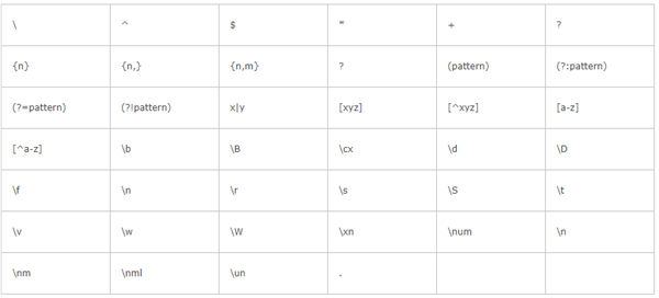 1)普通字符:包括沒(méi)有顯示指定為元字符的所有可打印和不可打印字符。這包括所有大寫(xiě)和小寫(xiě)字母,所有數(shù)字、所有標(biāo)點(diǎn)符號(hào)和一些其他符號(hào)。