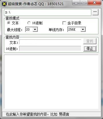 超級搜索是一款硬盤搜索軟件,電腦中存的文件隨著時間的推延,越積越多,需要時就很難找到,超級搜素就可以幫助用戶在自己的硬盤中搜索所需要的文件,硬盤搜索器可搜索16進(jìn)制文件和文本文件,包含子目錄。