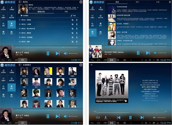 酷狗音樂Android pad版清爽簡(jiǎn)單的界面,便捷的操作體驗(yàn),給用戶帶來更好的Pad聽歌體驗(yàn)。