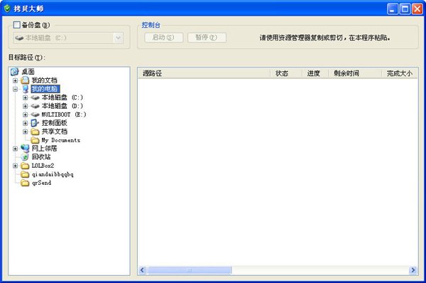 拷貝大師是一款免費(fèi)綠色的快速復(fù)制文件的軟件,界面簡(jiǎn)潔易用,主要是能有效的提高電腦文件移動(dòng)、復(fù)制、粘貼的速度,節(jié)省您的寶貴時(shí)間。