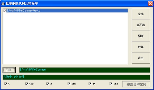 本軟件能批量刪除代碼中的注釋。自動識別C代碼和匯編代碼。