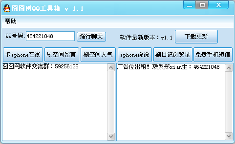 刷QQ空間人氣+刷QQ空間日記瀏覽量+無需小號(hào)刷留言+卡iphoneQQ在線+強(qiáng)制聊天+免費(fèi)發(fā)手機(jī)短信!