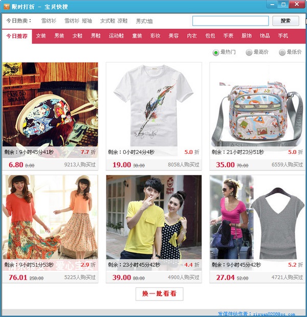 1. 匯聚淘寶網(wǎng)正在進(jìn)行限時(shí)打折活動(dòng)中的寶貝。有折扣幅度、打折剩余時(shí)間、成交量等信息可供參考。