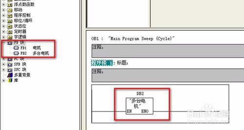 在OB1主程序中調(diào)用FB塊-->FB2到程序段中,添加關(guān)聯(lián)的DB2背景數(shù)據(jù)塊。