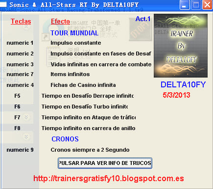 索尼克全明星賽車:變形是2010年SEGA推出的賽車競速游戲索尼克全明星賽車的續(xù)作。本游戲在保留前作特色的基礎(chǔ)上,做了一些改進(jìn),如交通工具從碰碰車變形成飛機(jī)或小船,以克服競賽過程中的飛行或水面賽道變化。玩家可以操控的角色,有蛋頭博士、Vyse,當(dāng)然還有大家最最熟悉的音速小子。