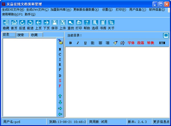 友益在線文檔管理軟件是一款在線管理htm網(wǎng)頁(yè)、mht單一網(wǎng)頁(yè)、word文檔、excel文檔、幻燈片、wps文件、pdf、txt、rtf、GIF、JPG、ICO、TIF、BMP、PNG、DJVU、Flash動(dòng)畫等格式的文件。