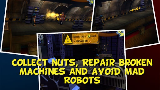 -通過10級滿的行動(dòng),避免瘋狂的機(jī)器人,收集堅(jiān)果和修復(fù)破碎機(jī)運(yùn)行和跳躍。-自動(dòng)保存在每一個(gè)檢查站的比賽。