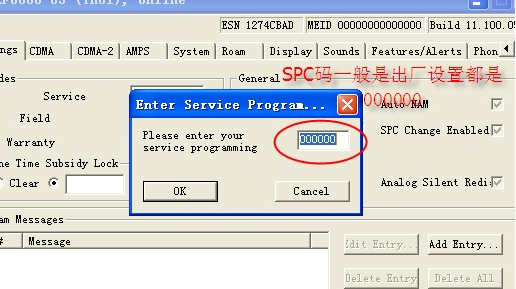 一般終端在出廠前沒有可以修改的話都是000000,如果有終端被修改過的話需要使用一種第三方軟件根據(jù)ESN算出原始的SPC碼。