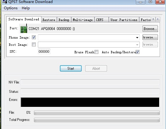 2.軟件下載(Software Download),這里說下QCN文件,QCN文件是高通CPU在手機里面存儲的一些數(shù)據(jù),其中包含有每個手機的IMEI號碼。如果手機在刷機時IMEI號碼被刷丟或者位置刷錯,那么恭喜你,你的手機無法打、接電話,也無法收、發(fā)短信。所以刷機前一定要備份QCN文件。如果刷壞了,還可以還原,不致于手機變成“小平板”!