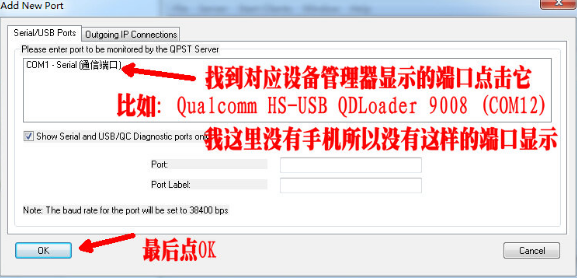 我們先配置以下QPST端口,方法如下: