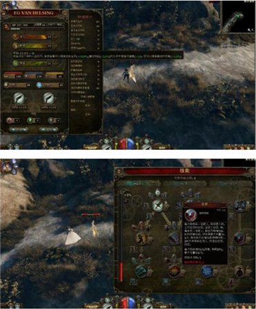 殺敵可以賺取經(jīng)驗(yàn)獲得升級(jí)得到分配點(diǎn),這些點(diǎn)可以用來(lái)提高范海辛的主要屬性,其它的可以在技能樹里分配,分裂成三個(gè)主要分支:劍,槍和魔法