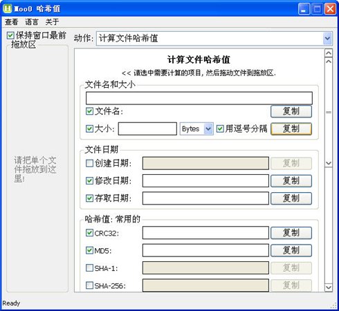 Moo0 HashCode非常容易使用的,你只需要選好計(jì)算hash的方法然后把文件拖進(jìn)軟件界面即可,當(dāng)前支持12種文件hash方法.