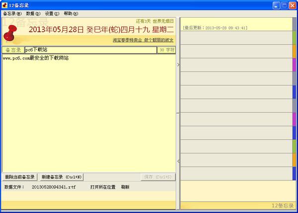 12備忘錄是一款最簡單實(shí)用的備忘錄軟件,并且還可以顯示日歷時(shí)間,農(nóng)歷和陽歷都會顯示,并且還有節(jié)日提醒,記性不太好老鍵忘的朋友可以試試這款軟件。