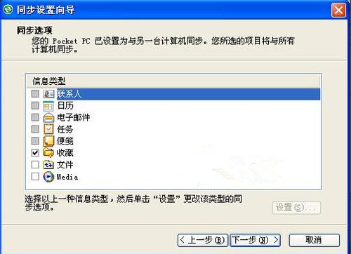 向?qū)е幸灿型竭x項(xiàng),可以選擇手機(jī)和PC需要同步的文件類型。