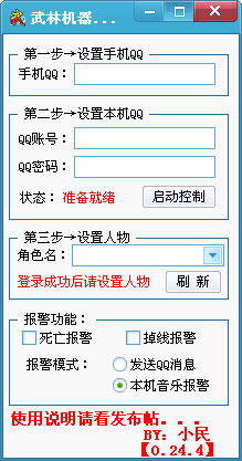 武林機器人是一款武林掛機軟件,掛機外出用,比如早晨出門開請神掛機,結果掛機過程中被別的玩家殺了,導致人物在那個位置死一天,既不加經驗也浪費電,本工具可以幫助您在外出的時候也可以得到人物的信息并遠程操控,掛機死亡掉線報警。