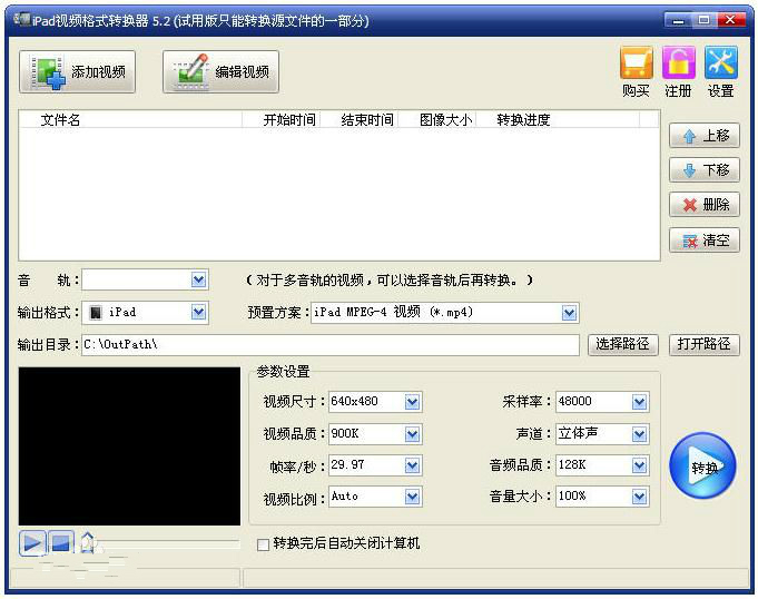 旭日視頻格式轉(zhuǎn)換器5.6綠色版 此外,您可以使用旭日iPad視頻格式轉(zhuǎn)換器從視頻格式中提取音頻輸出iPad支持的MP3、M4A、AAC等音頻格式,還可以選擇喜歡的視頻片段轉(zhuǎn)換輸出,裁剪視頻圖像去掉多余的黑邊,調(diào)節(jié)視頻亮度、對(duì)比度、飽和度和音量大小,讓您的iPad充分發(fā)揮它的優(yōu)勢(shì),您可以快樂地享受數(shù)字娛樂生活。