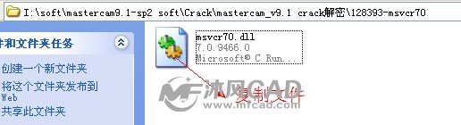 在軟件中,打開crack/mastercam_v9.1 crack解密/128393-msvcr70文件夾,我們可以看到 msvcr70.dll 文件,并把文件進(jìn)行復(fù)制,如圖: