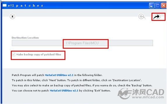 選擇好mastercam9.1的安裝路徑,然后把 make backup cope of patched files前面的對(duì)勾打上,然后點(diǎn)擊下一步,如圖: