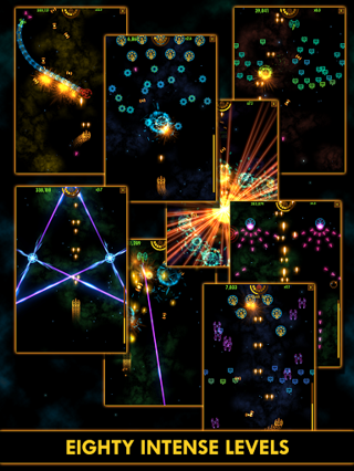 只有各種風騷的走位躲避一些看似不能躲的傷害才能真正拯救地球;生存模式下,變態(tài)的敵軍數(shù)量和漫天的霓虹燈飛彈則無時無刻不挑動玩家的神經(jīng),只有在環(huán)境下生存下來的玩家才算的上真正的高玩!