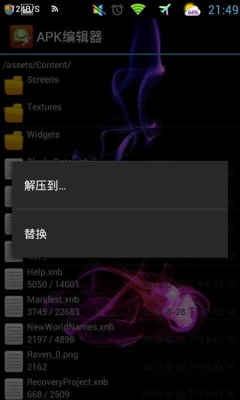APK編輯器APK Editor Pro這玩意是給技術(shù)黨和美化黨使用的,它可以幫助我們做事情,比如本地化的字符串,背景圖片更換,布局重新架構(gòu),甚至廣告消除,去除權(quán)限等它能做什么取決于你如何使用它。但是,要使用它做好,我們需要一點(diǎn)點(diǎn)的專業(yè)技能。不要害怕,給出了一些例子在幫助頁面。具體功能在軟件幫助里面,神器啊!醬油黨一邊玩去!