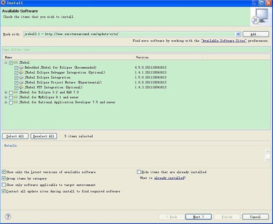 1.先安裝壓縮包里面的jrebel eclipse插件update-site.zip,安裝方式google。