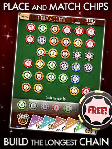 當你有3個或者更多相同相鄰的籌碼時你就配對成功。并且你會獲得一個更高值的籌碼。匹配鏈越長就能獲得巨額獎賞。使用Power-Up卡片來獲得配對鏈組合,延伸配對鏈,以及最大限度提升分數。