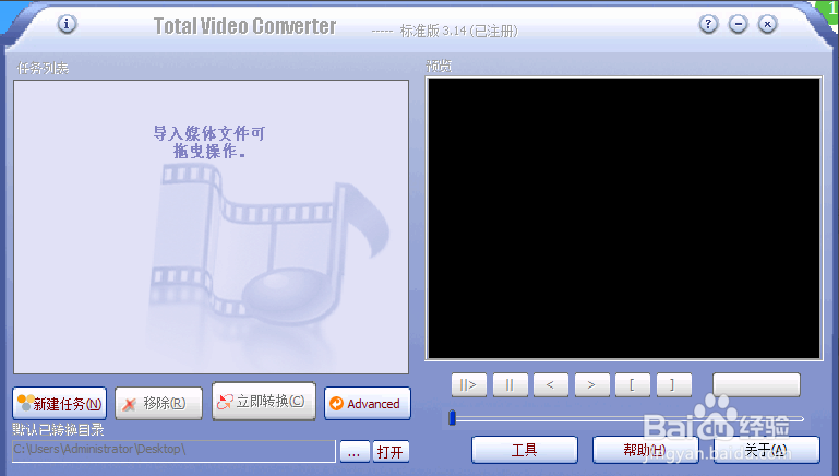 基本操作現在網絡上有很多視頻轉換器,我使用的是Total Video Converter視頻轉換器中文破解版,先從本站下載解壓好軟件后;打開軟件,我們可以看見一個綠化工具,單擊;