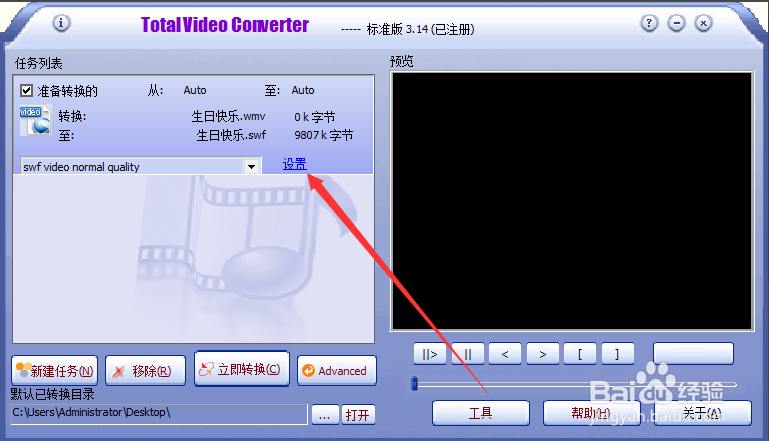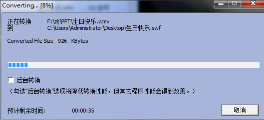 這里我們選擇將我們的WMV格式轉換成swf格式;