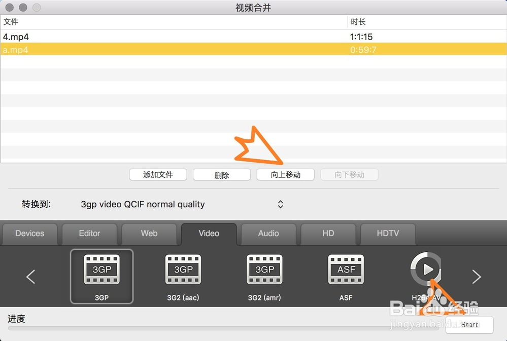 然后點擊添加文件夾,接著點擊移動按照視頻的順序排列好視頻文件,接著點擊開始。