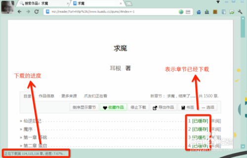 接著,等待一會(huì),我們會(huì)看到章節(jié)后邊的“待下載”都會(huì)變成“已緩存”。