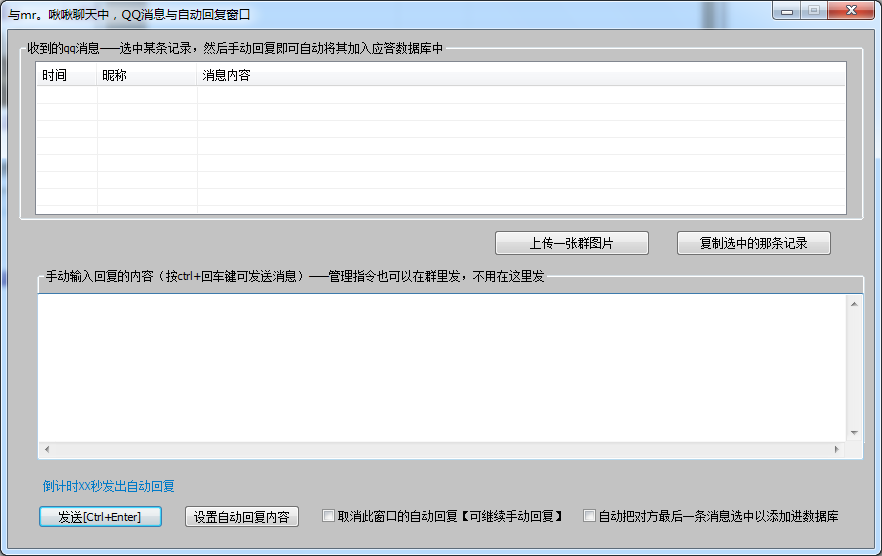 聊天窗口打開后,你可以選擇手動輸入自動回復(fù)內(nèi)容或者導(dǎo)入自動回復(fù)內(nèi)容。