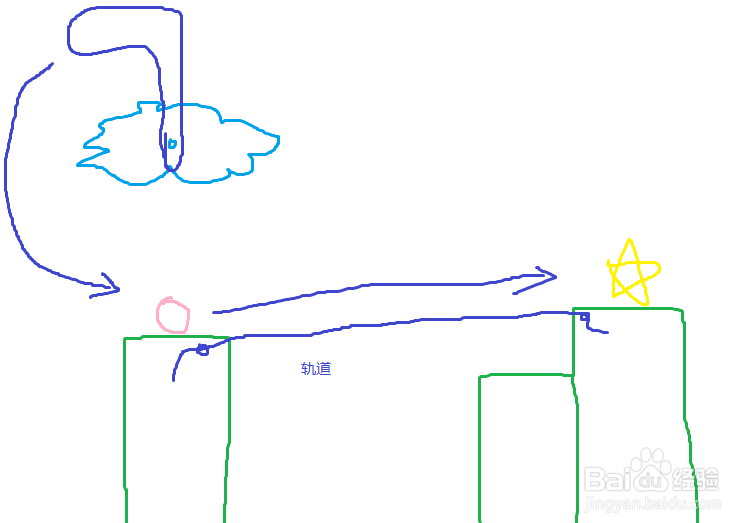 這一關(guān)那,比較簡(jiǎn)單,沒有之前那么難,可能也是這一大關(guān)都是類似的方法的緣故吧。首先,在上方搭建一個(gè)軌道,如下圖所示,畫曲線的時(shí)候盡量平滑,貼著云的邊畫。