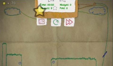 畫面蠟筆物理學(xué)游戲的畫面風(fēng)格十分特別,令人一見難忘,昏黃的草紙背景,搭配五顏六色的蠟筆線條,在簡(jiǎn)單之中透露出另類和別致。游戲的動(dòng)畫流暢,配合真實(shí)的物理模擬引擎,顯示出了制作者高超的水平。
