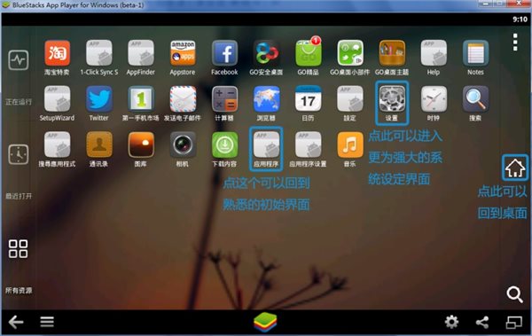 1、下載BlueStacks安卓模擬器后并安裝,第一次進(jìn)入模擬器界面后的各項功能介紹,因版本不同,界面或有變化