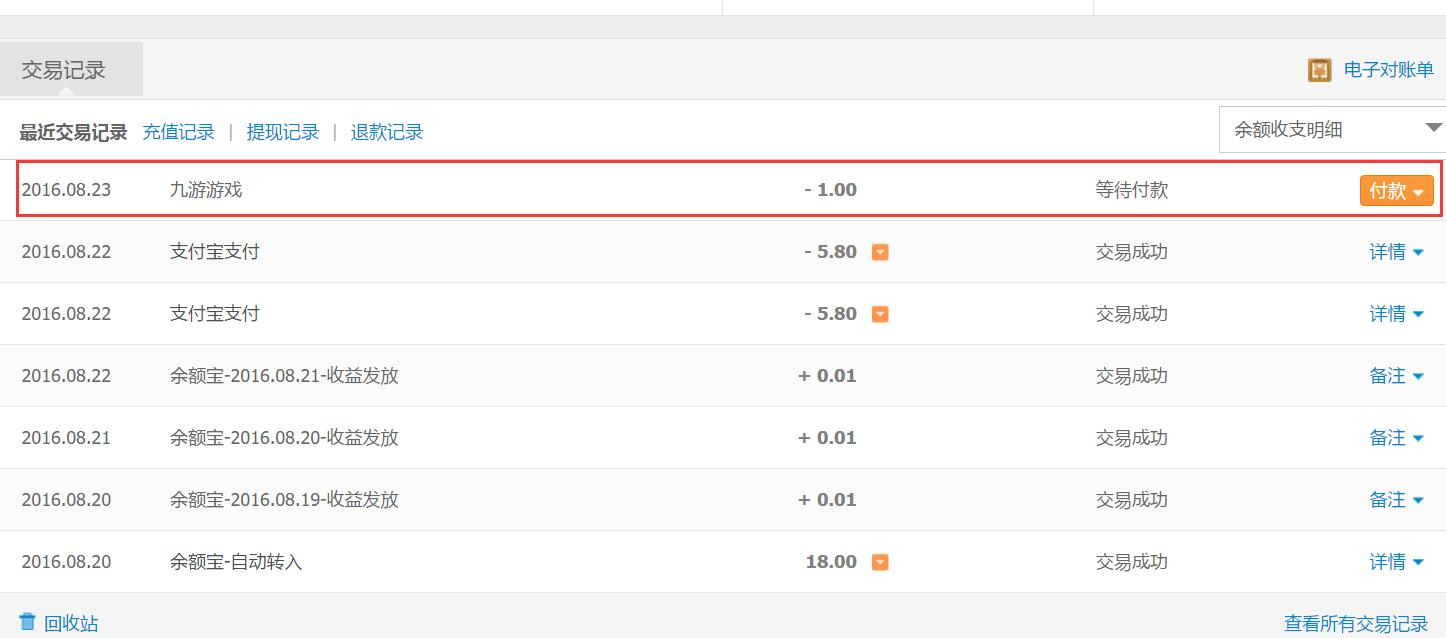如果遇到無法通過支付寶APP端支付的用戶,也可以通過網(wǎng)頁端開打并登陸支付寶,在交易記錄內(nèi)可以看到游戲支付的信息,根據(jù)支付流程完成支付即可。